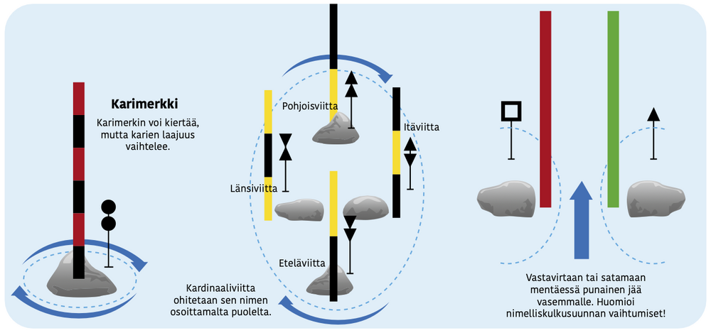 Reittien ylläpitäjät toivovat, että veneilijät ilmoittaisivat kaikista viitoitusta koskevista ongelmista tai poikkeamista